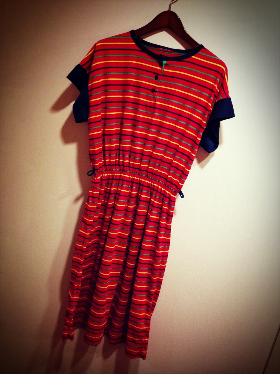 マリンカラーと白が基調の涼しげなワンピース^ - ^見てるだけで涼しくなります!赤いラインがポイント◎