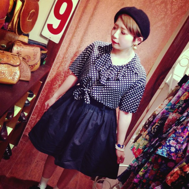裾も縛れるミニ丈のドットブラウス