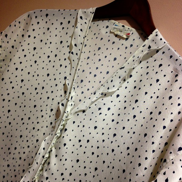 雨のような柄に襟と袖がフリルでとても可愛らしいデザイン。ボトムスはプリーツスカート等キュートに合わせるのも素敵♡