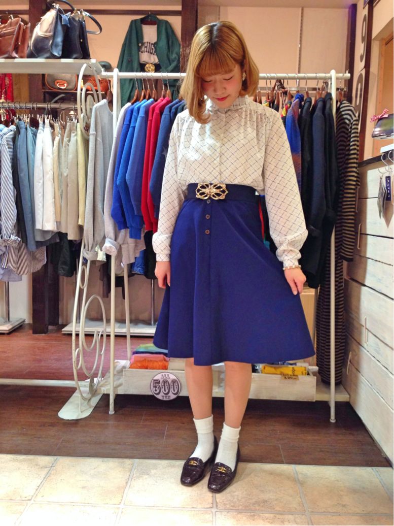 白地にネイビーの大きいドット、そして丸襟というさいこうにレトロな1枚(^O^)