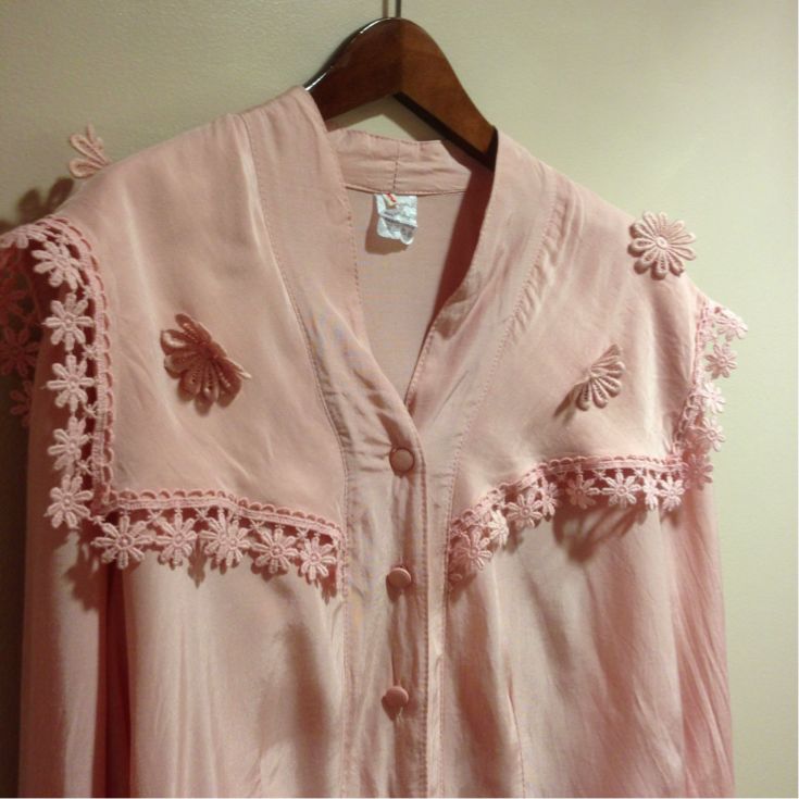 ハイネック、肩ボタンタイプ。パフスリーブですのでクラシカルな印象に。お花の刺繍が素敵です♡