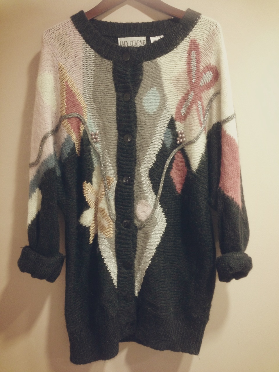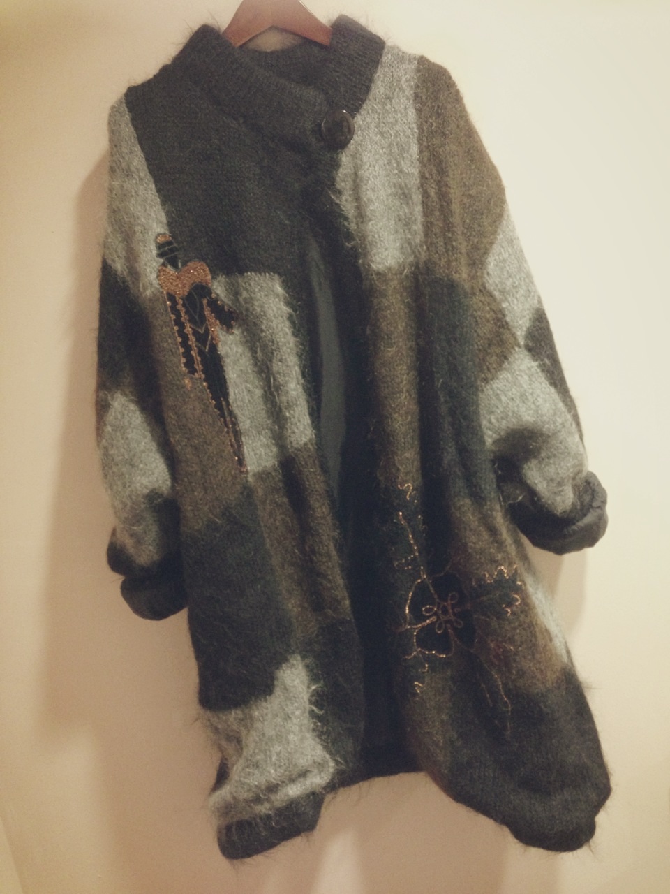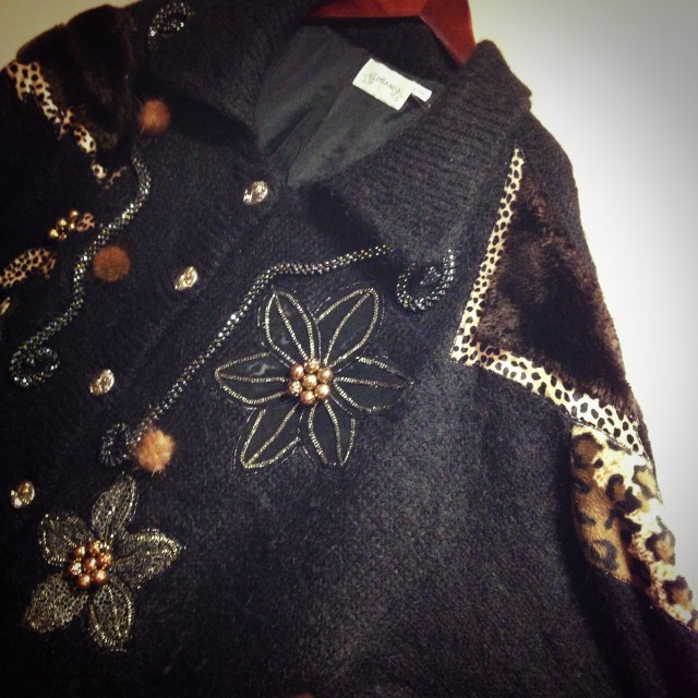 前あきカーディガンタイプ。よく見ると緑や赤のキラキラ入り♡