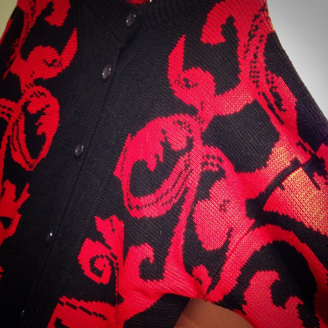 黒×赤の格好良い印象の柄。ハードに着てもカジュアルに合わせても素敵◎