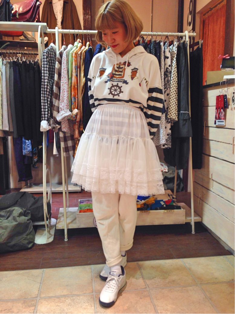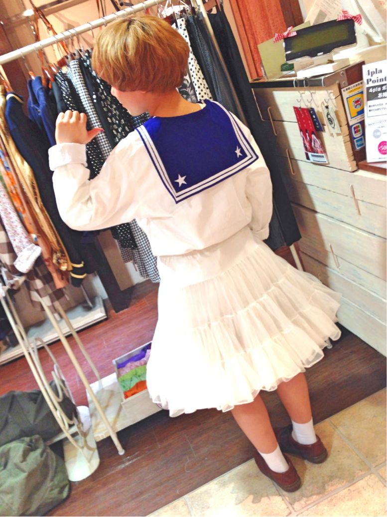 ボリュームが少なく裾のレースがポイントのパニエを使ったゆったりマリンコーデ *\(^o^)/*