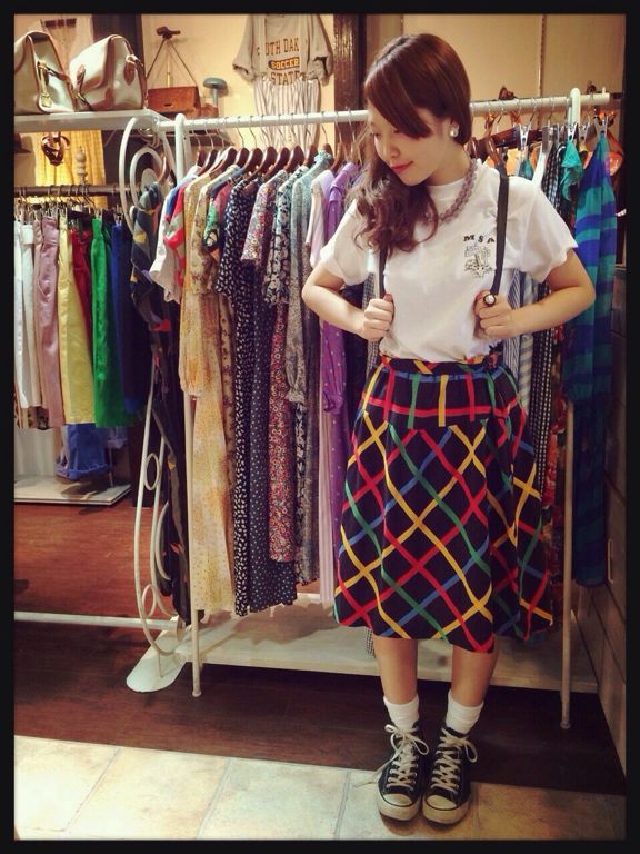インパクト大なスカートにTシャツとリュックをプラスしたスポーティーコーデに♪