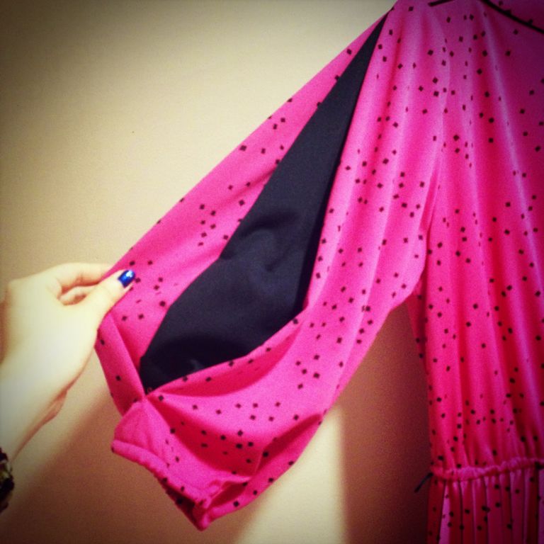 黒のぽつぽつ柄に、肩の方は広がると黒が出てくる変わったデザイン。ウエストゴムなので着やすいです◎