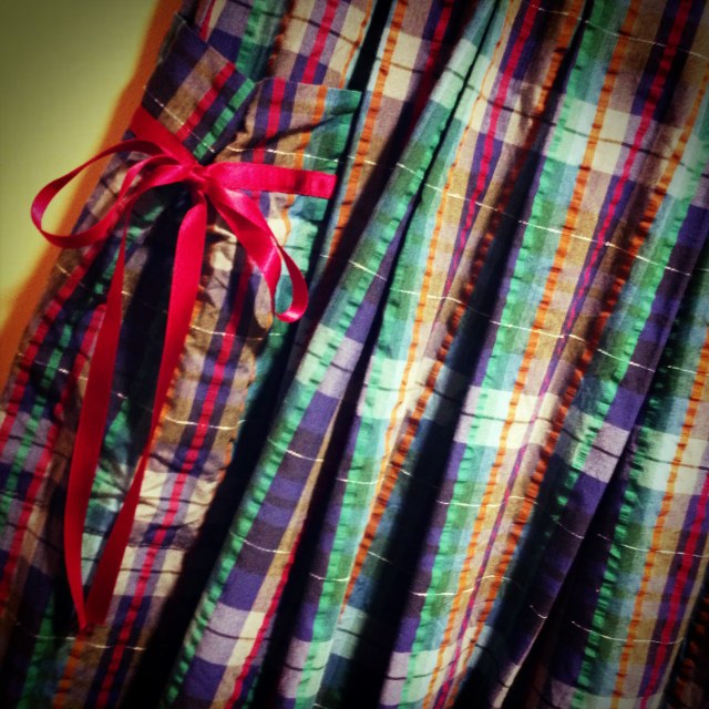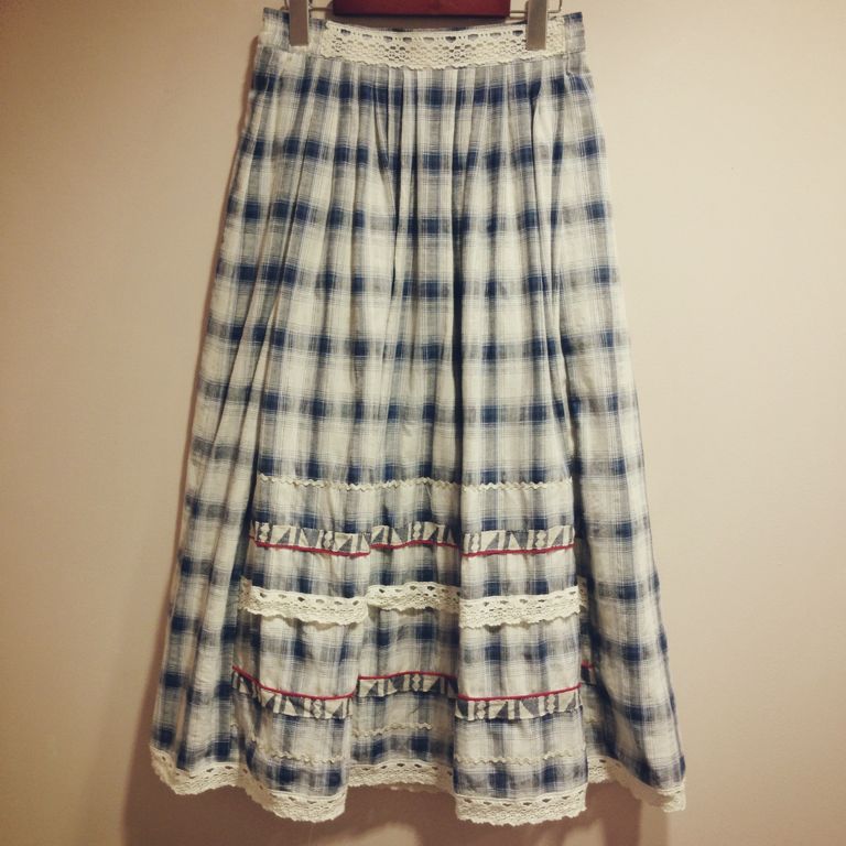 ウエスト部分や裾のレースがチェック柄とマッチしてカントリーな雰囲気♡