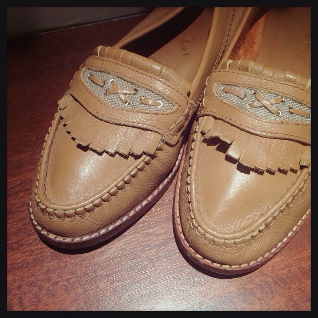 茶色レザーのシンプルフラットシューズ(^ ^)とっても合わせやすい一足◎