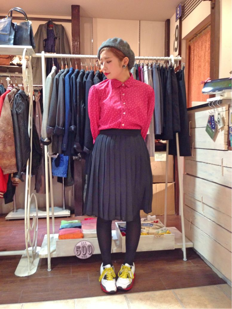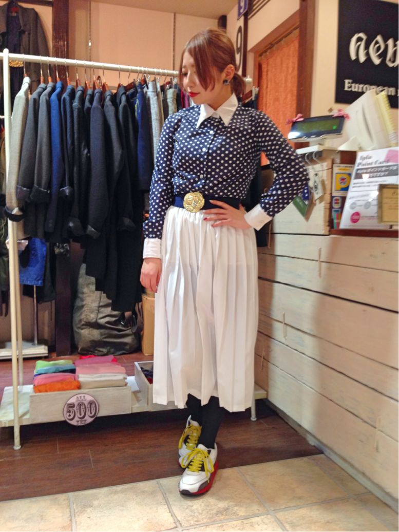 タイトスカートと合わせると思いっきりレトロな印象に(^∇^)(^∇^)