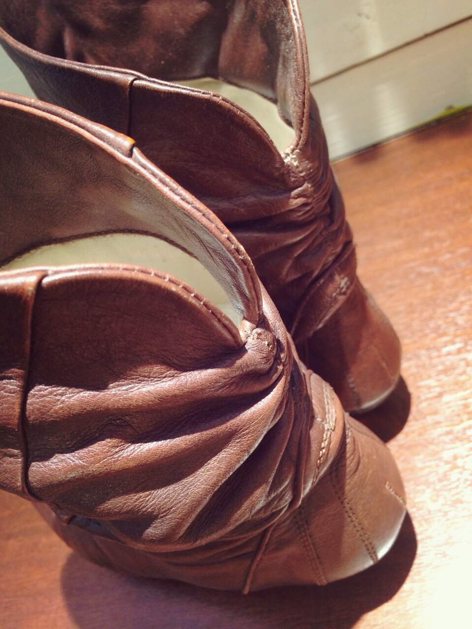 こちらはスウェードの切り替えしタイプ!うしろもくしゅくしゅに革紐と、凝った一足です( ̄ー ̄)