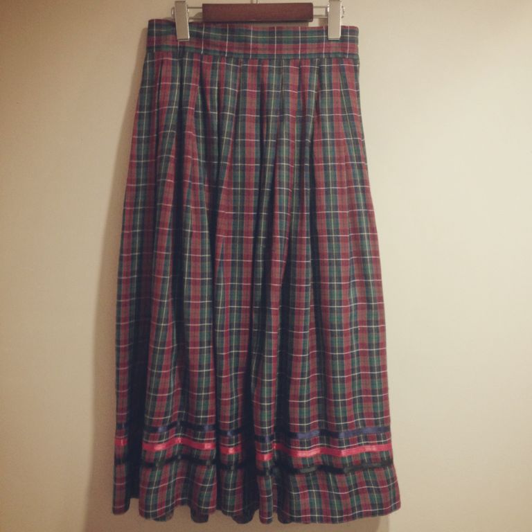赤と緑のチロルチェック柄。暗めなので落ち着いて着られます◎