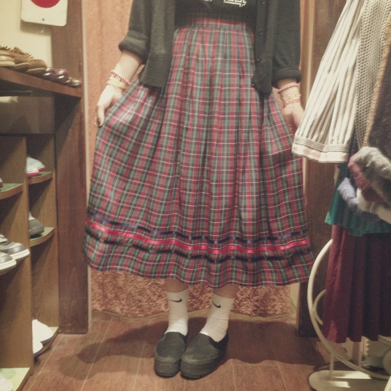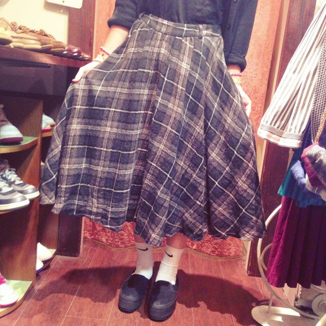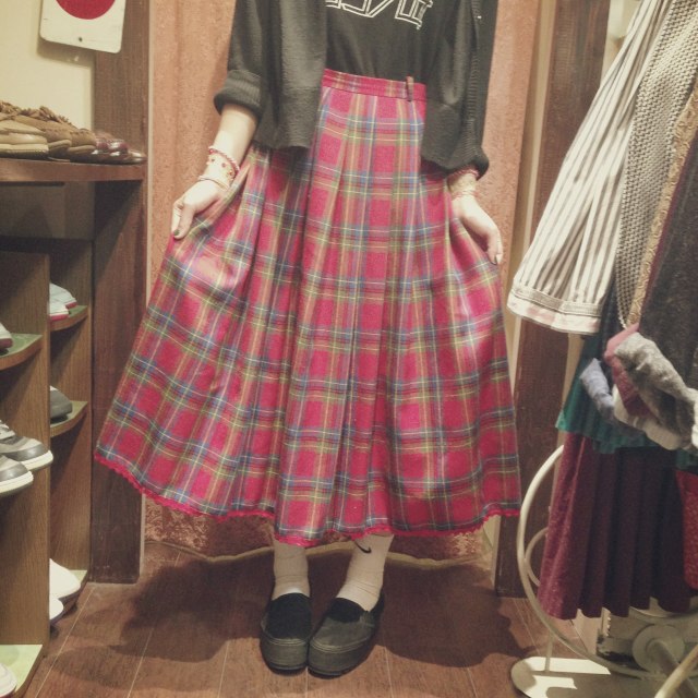 本日は秋らしいチェックロングスカートのご紹介させて頂きます(´・Д・)」