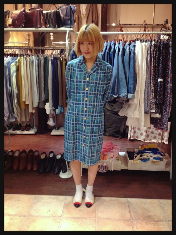 チェック柄に金ボタンがレトロなワンピース◎前開きにもなります(o^^o)