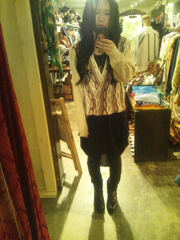 猛暑ですがニットの素敵さを伝えるためランボー決死のニットです!今日は朝一人なので自撮りになってしまいましたが少しでも着用感がわかればと、、(TT)