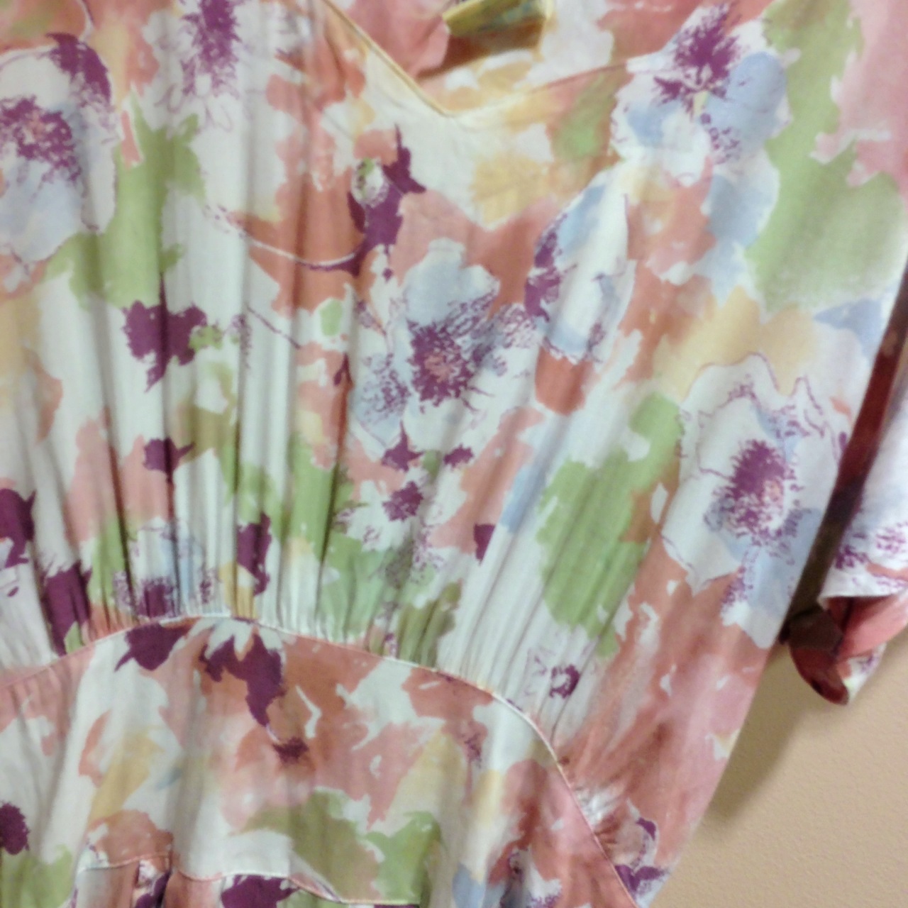 淡いピンクと白が混ざったような花柄のワンピース♡女の子らしい雰囲気が素敵(*^_^*)