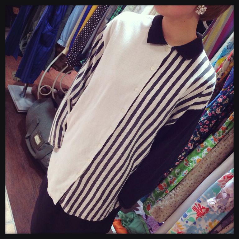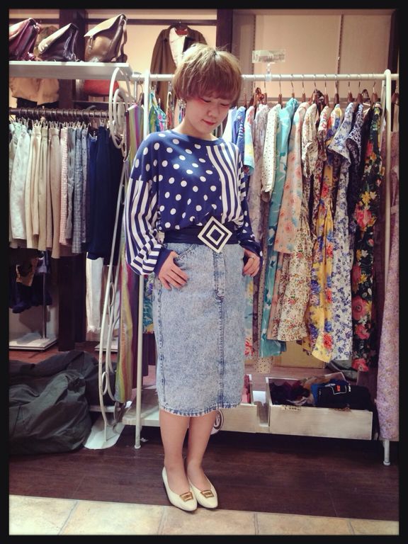ドットとストライプ柄のスウェット型のロンT!80s風に^_−☆
