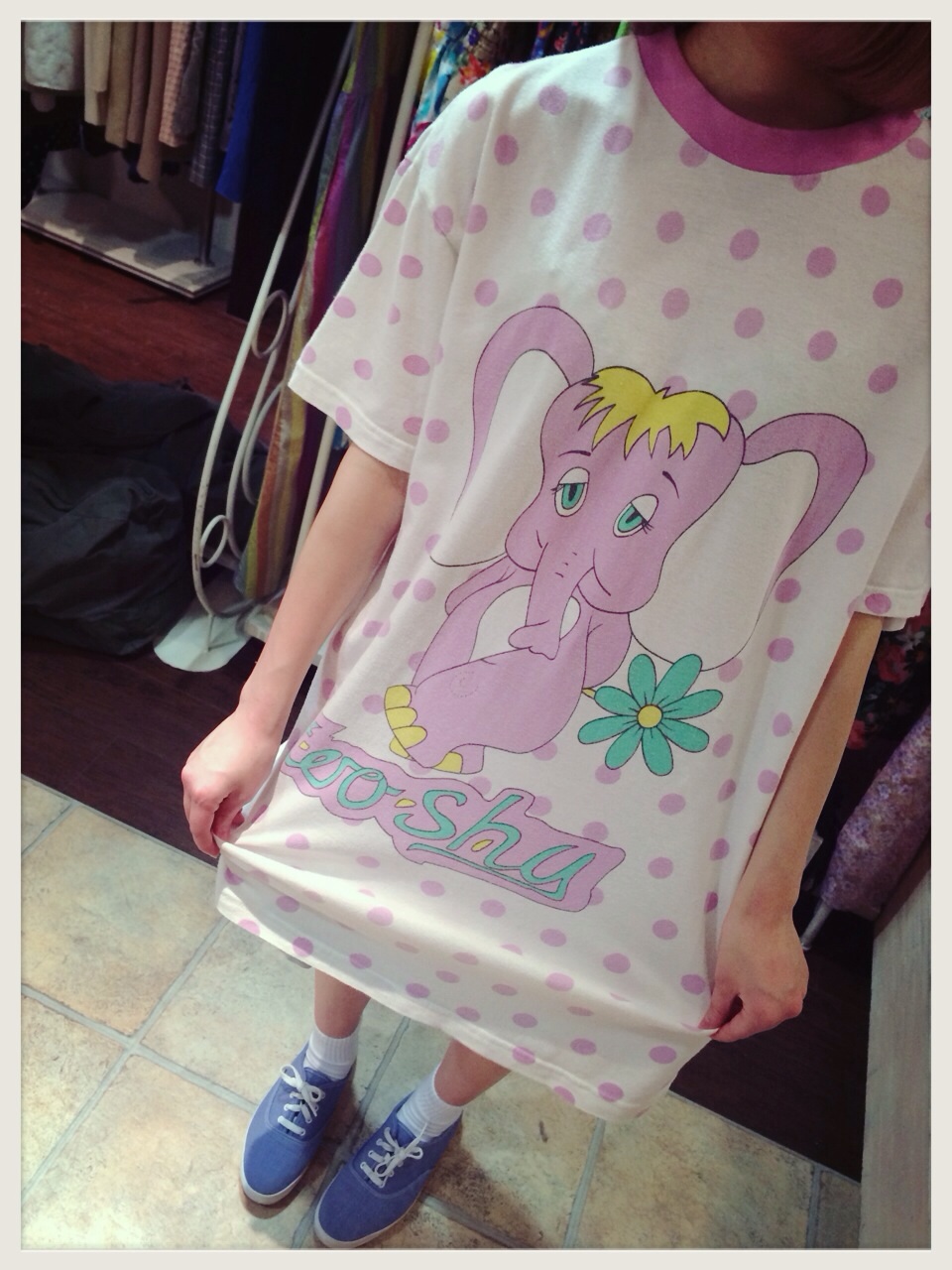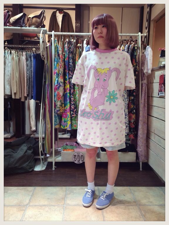 パステルなゾウさんプリントが可愛いTシャツワンピ♡ショートパンツでらくちんに♪
