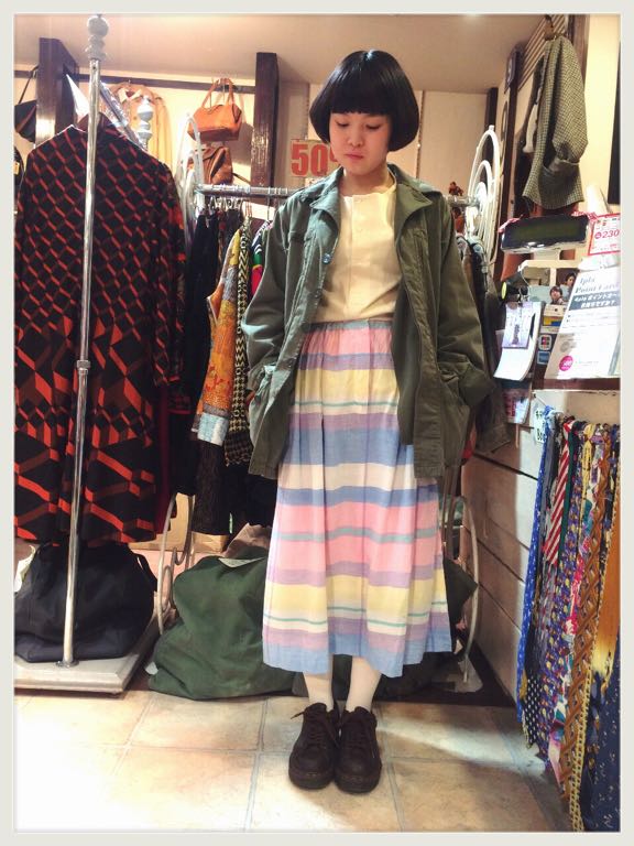 パステルカラーのストライプスカート◎ミリタリージャケットと合わせてワークmixに♪