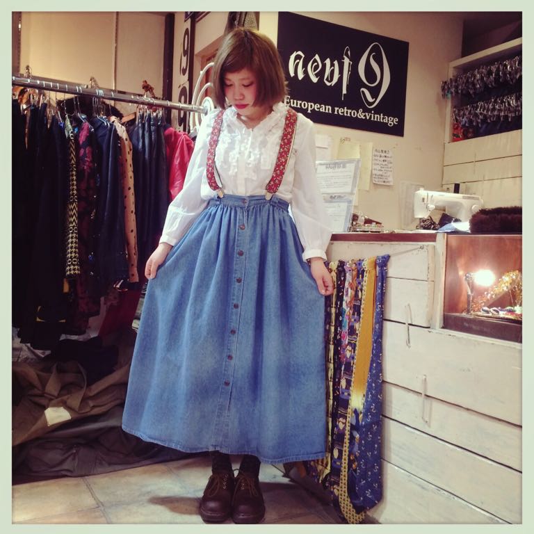 薄めの色なのでブラウスとサスペンダーで春っぽく(^-^)♪