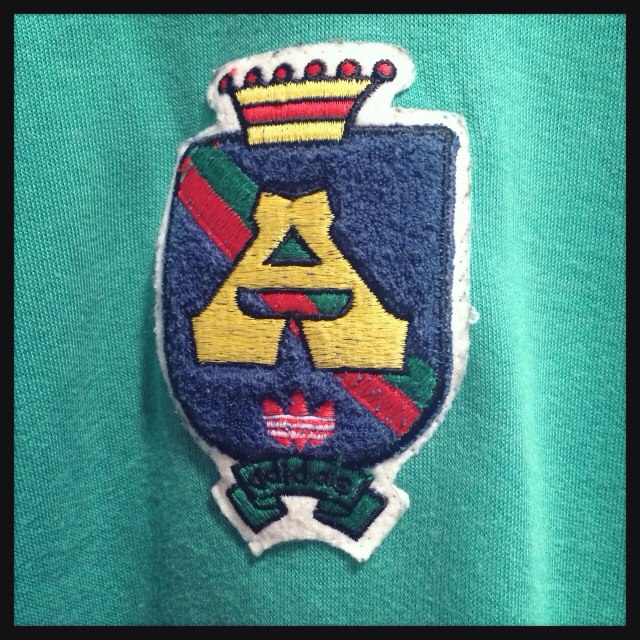 グレー地に緑と黄色のラインがめずらしいadidasスウェット◎