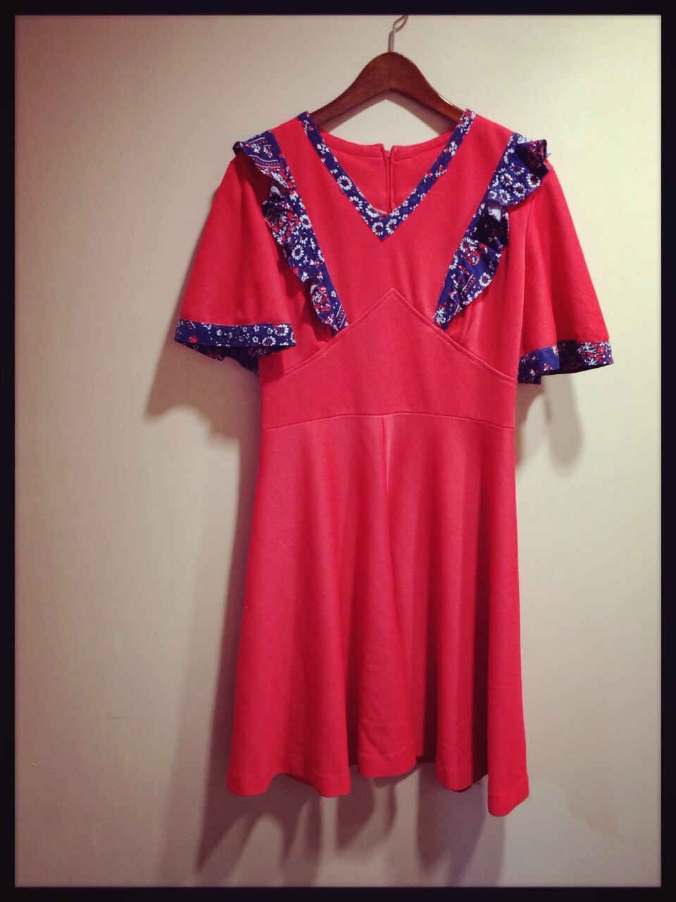赤にネイビーの花柄フリフリ付き