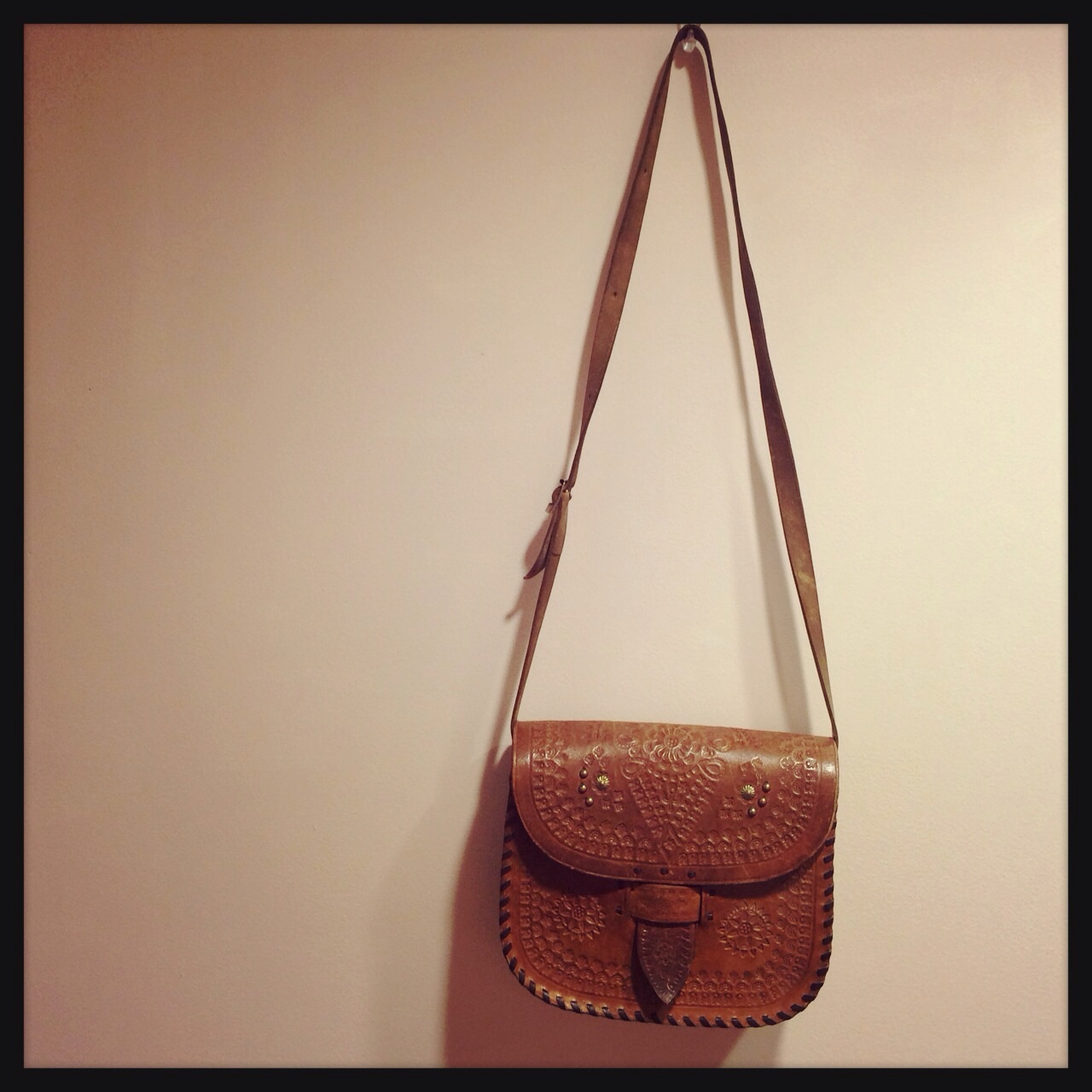 サイドのフリンジとレース風な型押しが可愛い♪紐の長さ調節できるのでショルダーとしても(^_^)/☆