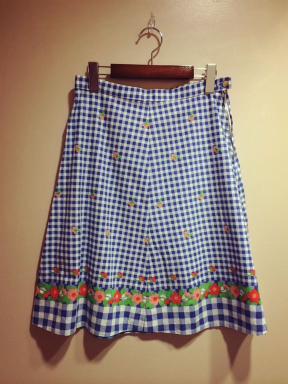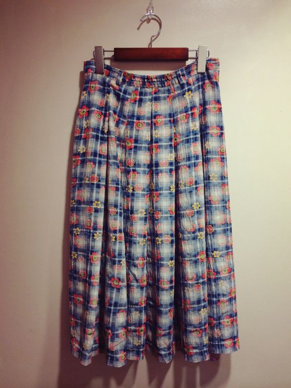 レトロなギンガムチェックのお花柄のスカートです!