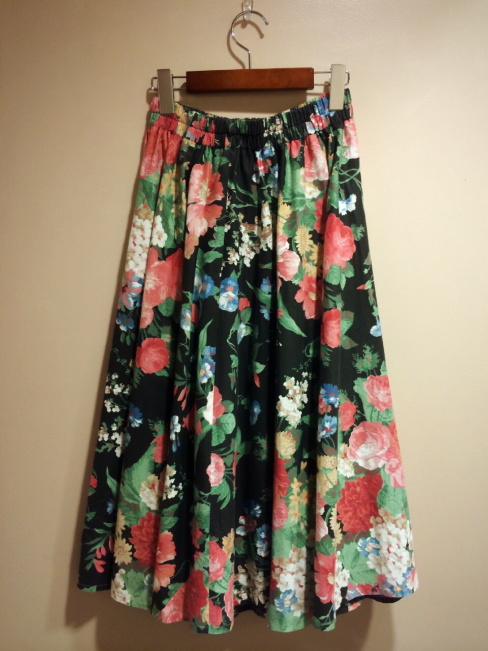 黒地に花柄のスカート!