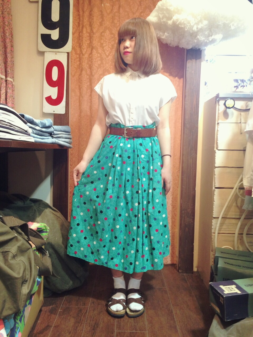 カルピスみたいな爽やかな白ドットのワンピース◎ベルト付きでレトロ可愛い♪