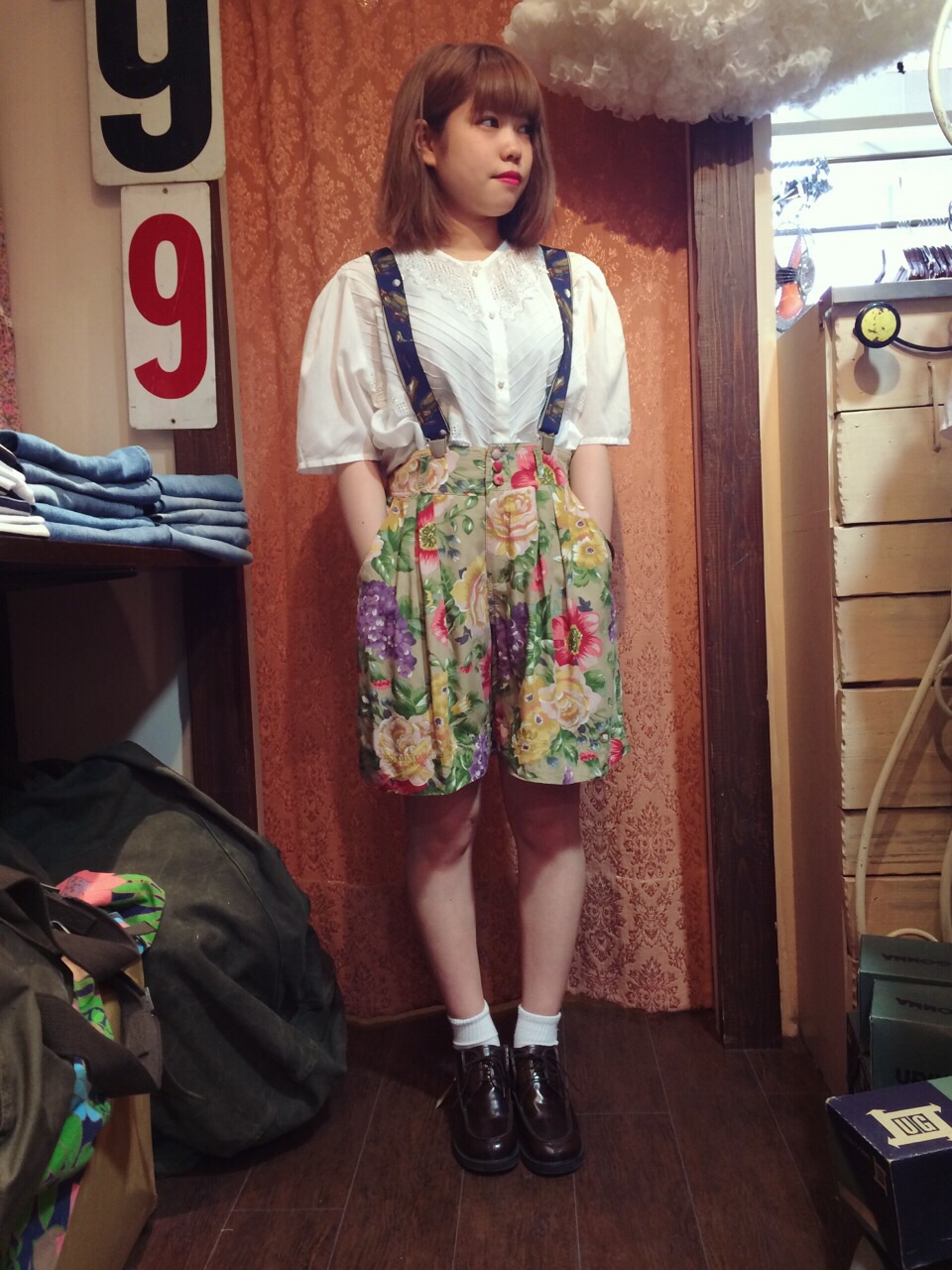 下がキュロットになった花柄コンビネゾン◎スカートが苦手な方にも着やすい形です^ ^