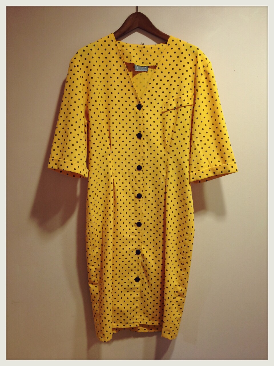 80sな雰囲気漂う黄色ドットのワンピース◎前開きにするとロングジャケットとしても使えます^ ^