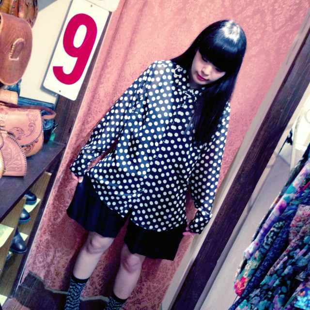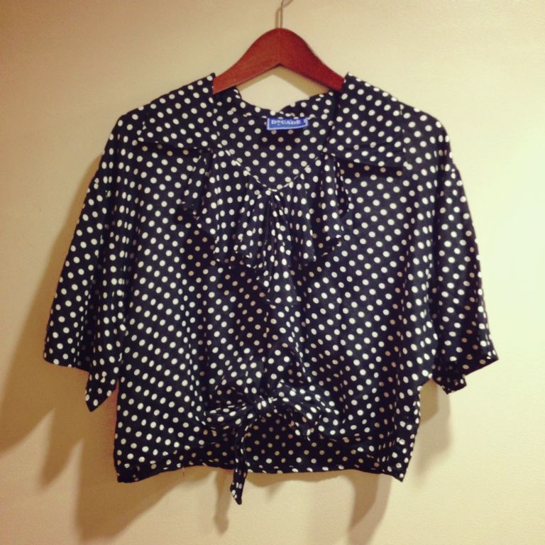 裾も縛れるミニ丈のドットブラウス