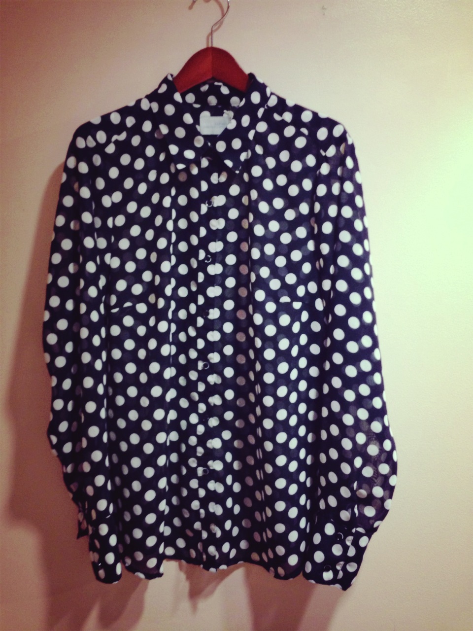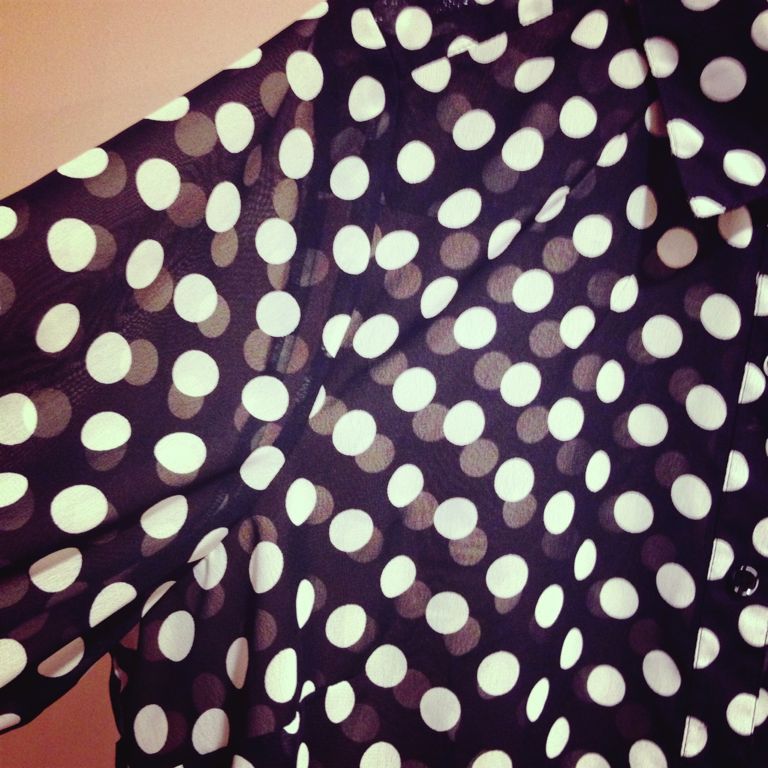 シースルーで大きめなドットブラウス
