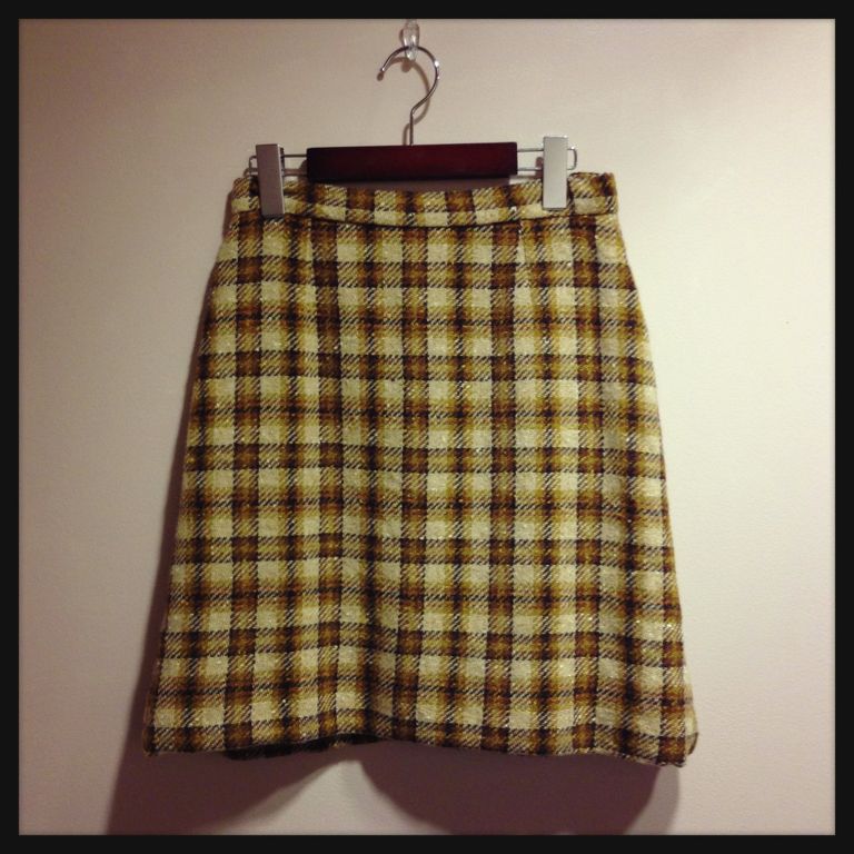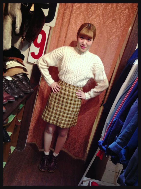 黄色チェックのミニ丈ウールタイトスカート◎フィッシャーマンニットをインして可愛らしく♡