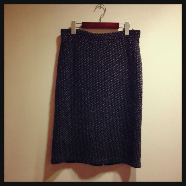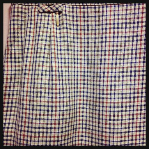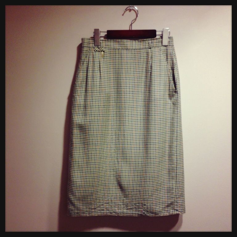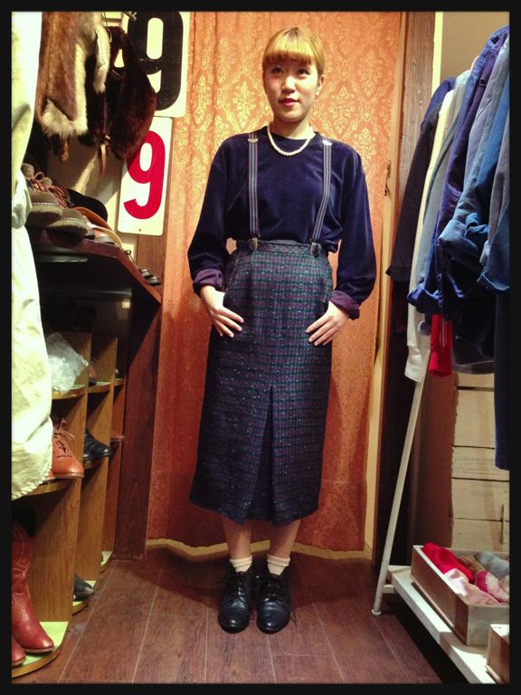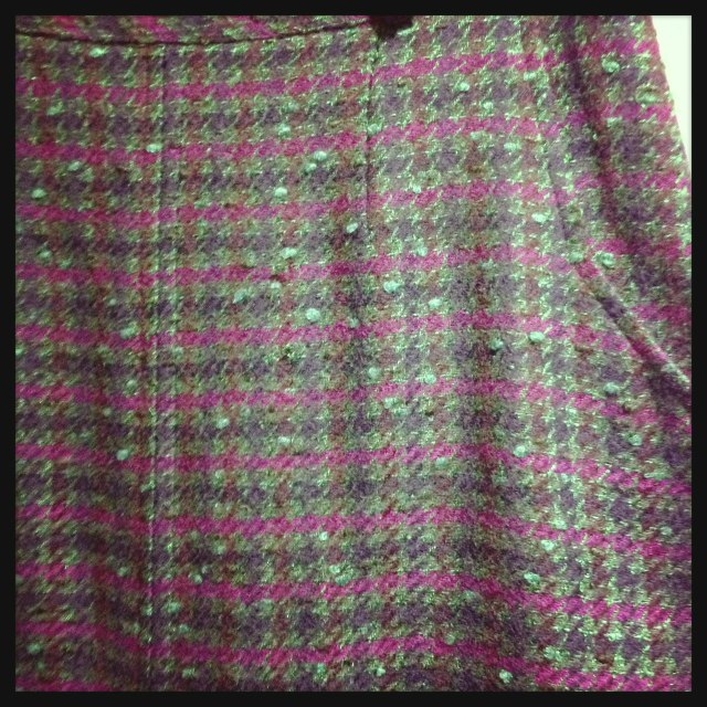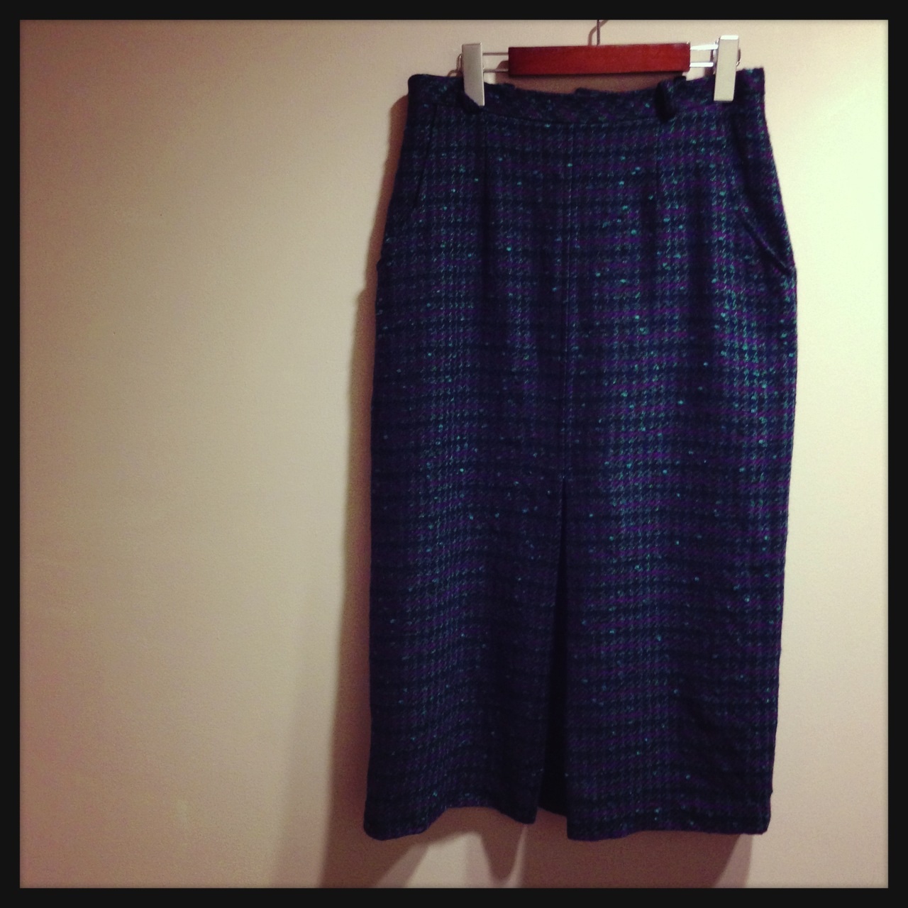 緑×紫チェックのウールタイトスカート◎ロング丈で少し大きめなのでサスペンダーで吊るのがGOOD♡