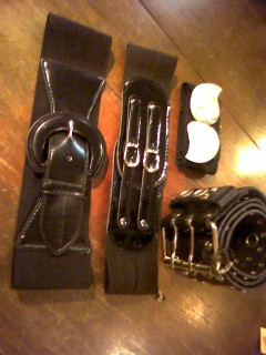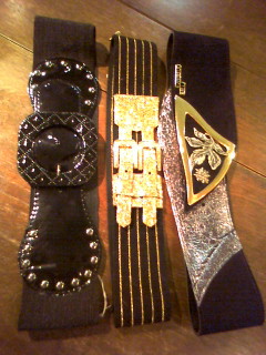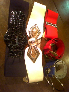 カラフルなものからデザインの凝った黒いベルトも!(写真上の方)