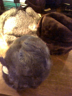 ファーのモコモコ帽子も登場です。(写真下の方)個人的には羽のついた青ぽい帽子イイと思います☆