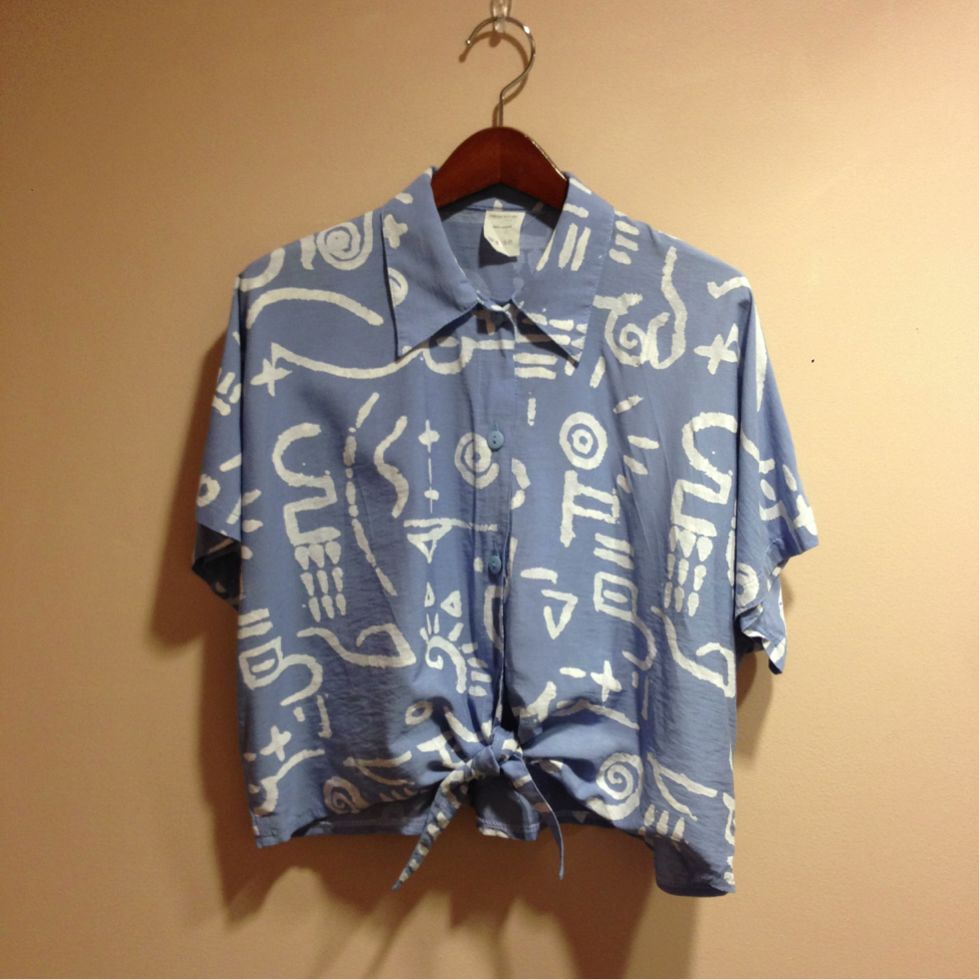 雨のような柄に襟と袖がフリルでとても可愛らしいデザイン。ボトムスはプリーツスカート等キュートに合わせるのも素敵♡