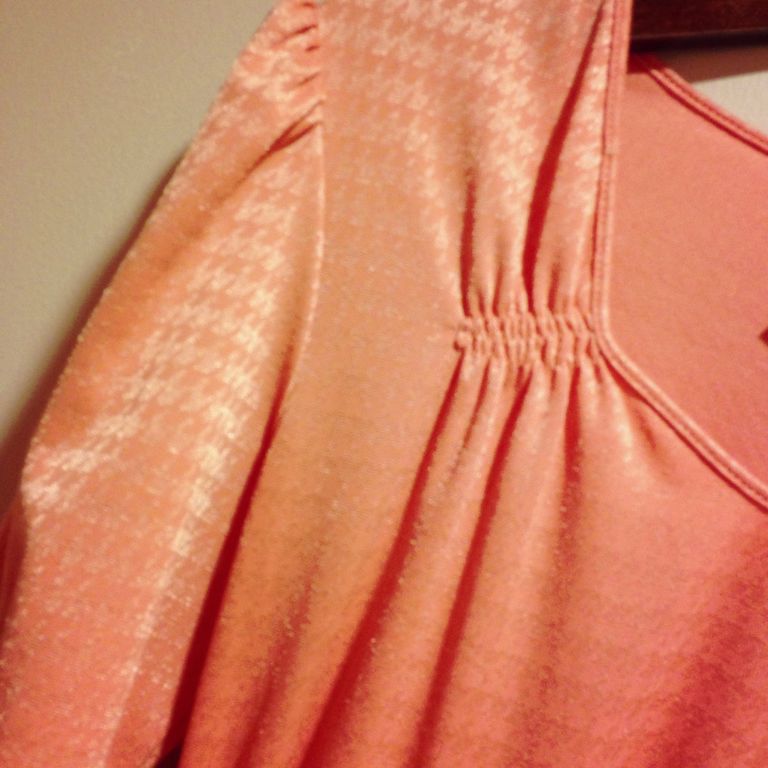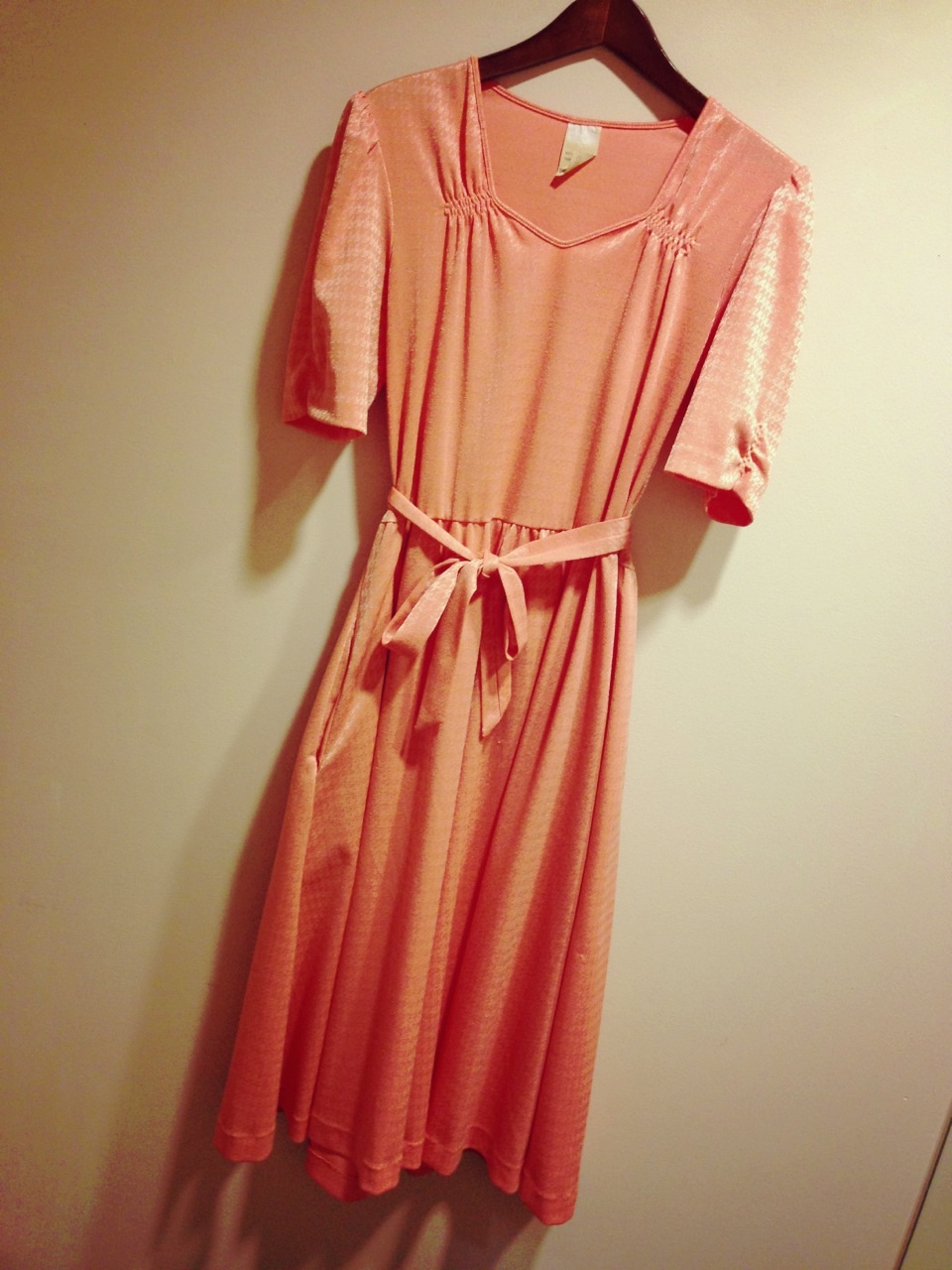 サーモンピンクのワンピース!うっすらと千鳥格子柄〜!