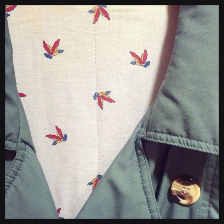 中綿が入っているのでトレンチですがあったかいです^ ^!裏地が鳥柄なのがひじょうに可愛い♡