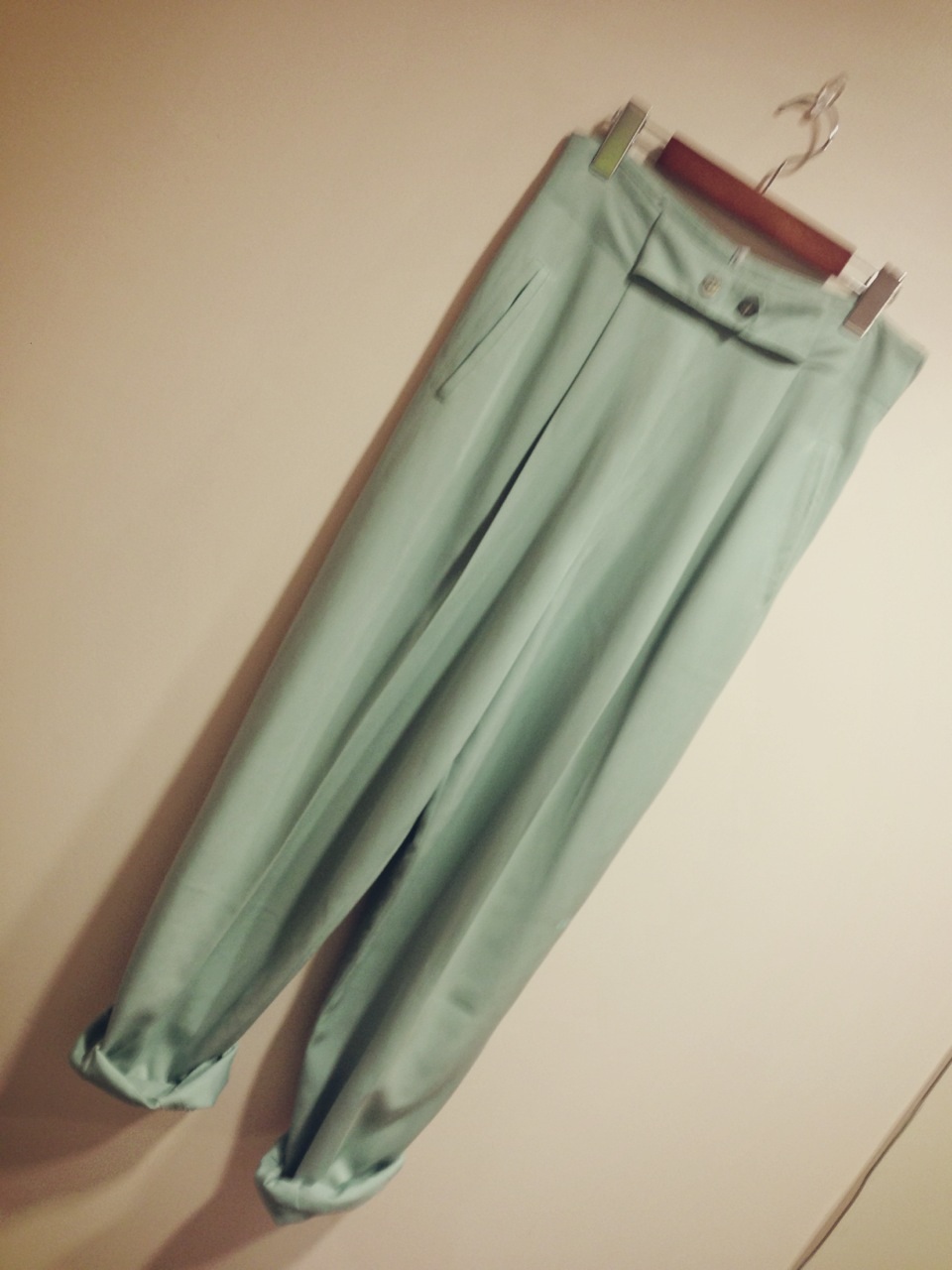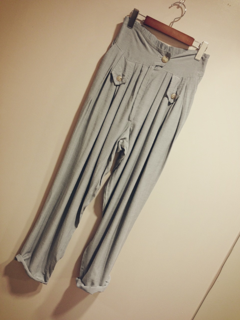 薄いピンクです!ウエストもしっかりデザイン!ベルト無しでハイウエストで着られます