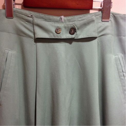 こちらは薄いグリーンです。ブラウスの他にもTシャツや柄シャツなど幅広く組み合わせられます◎