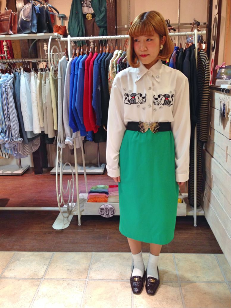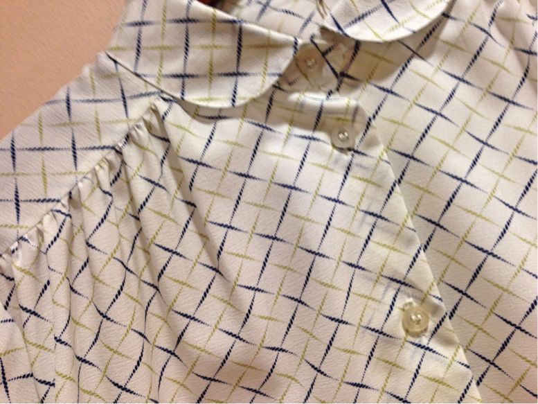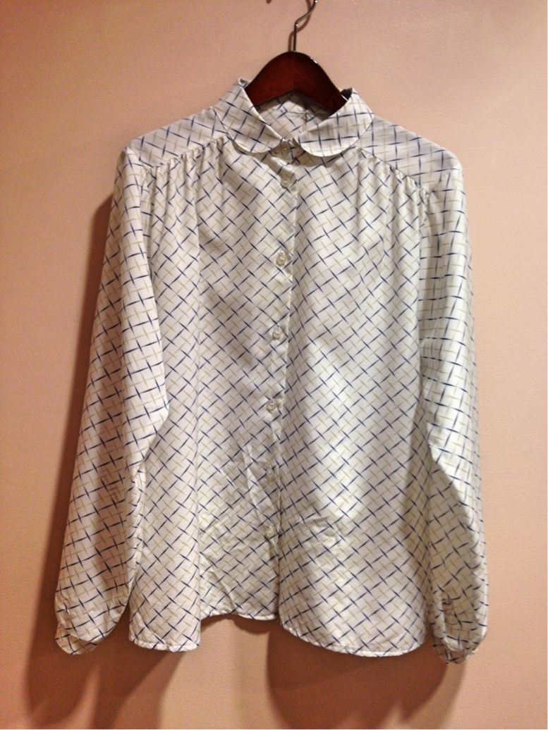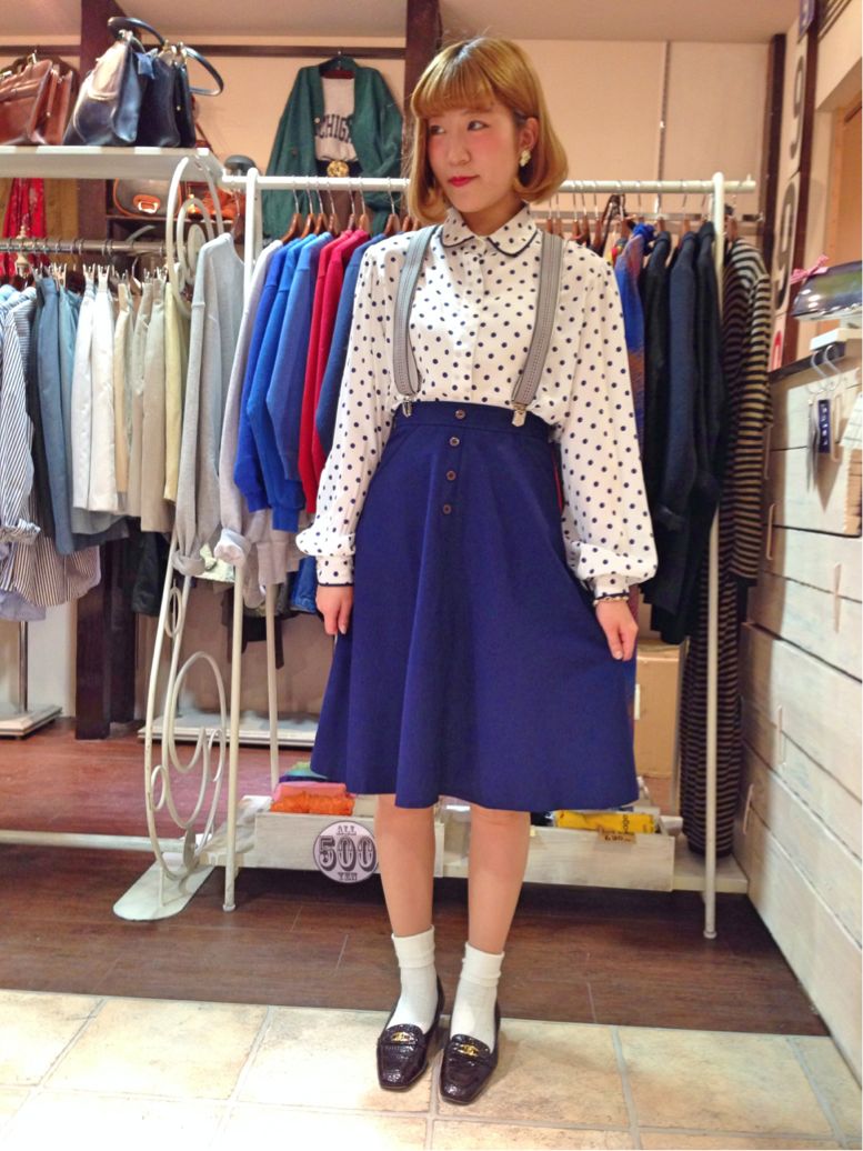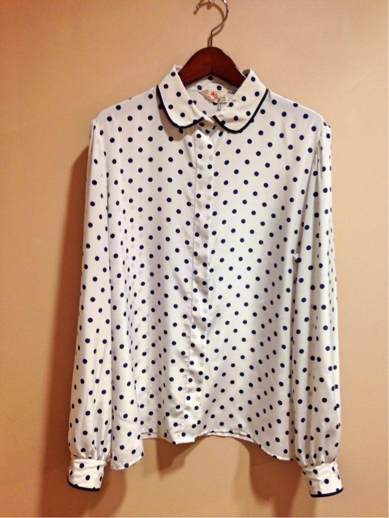 白地にネイビーの大きいドット、そして丸襟というさいこうにレトロな1枚(^O^)