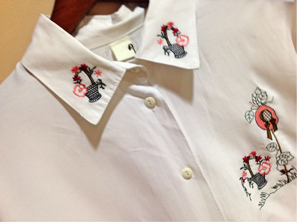 こちらも襟・ボタン周辺に刺繍が入っています(^_^)