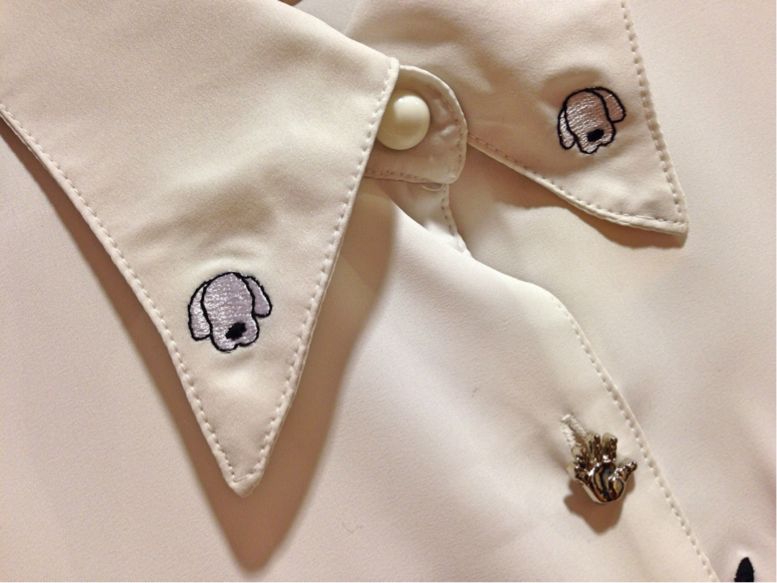 こちらも襟に刺繍が入っていて、さらにボタンは人の手というかわいさがつまった1枚!!!