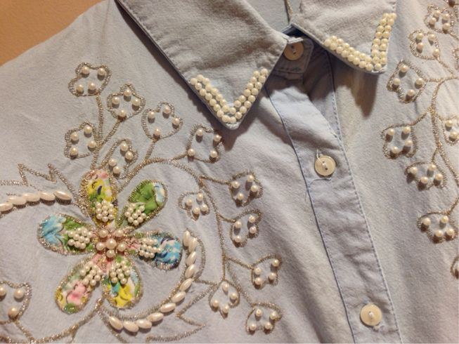 うすーいデニムの色にパールやお花の刺繍がはなやかでかわいらしい ♡