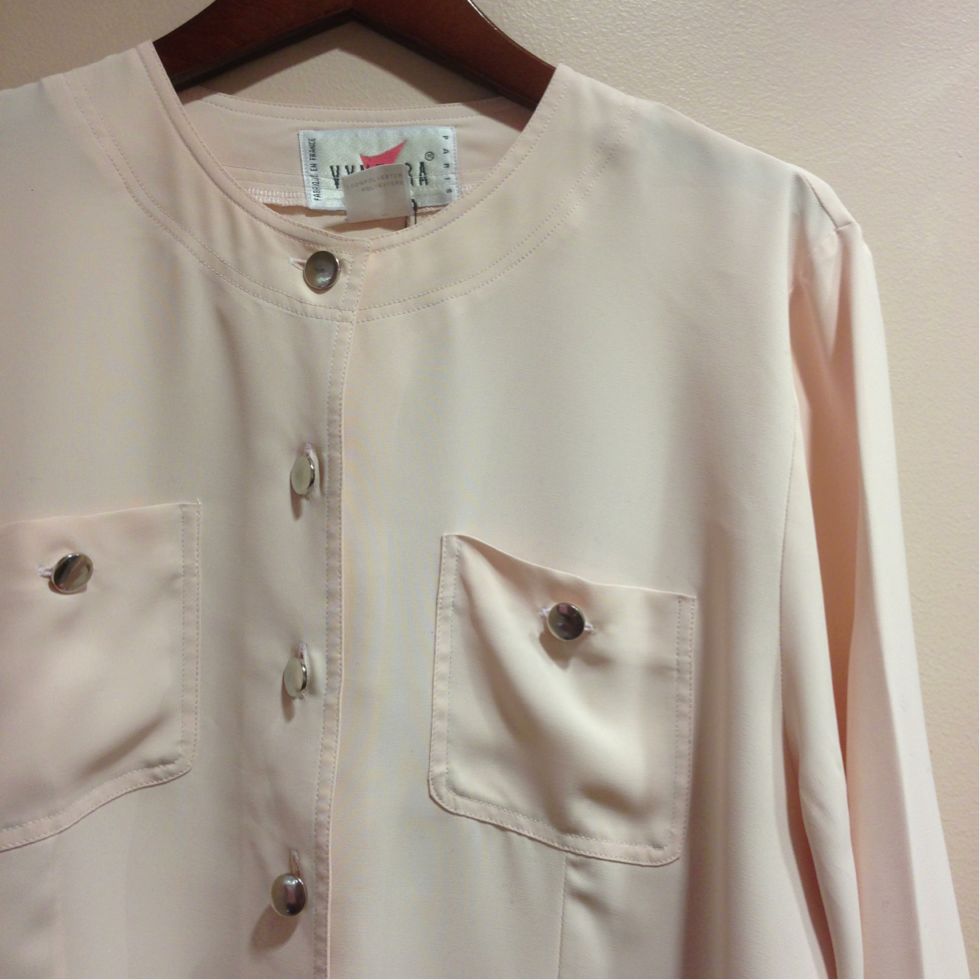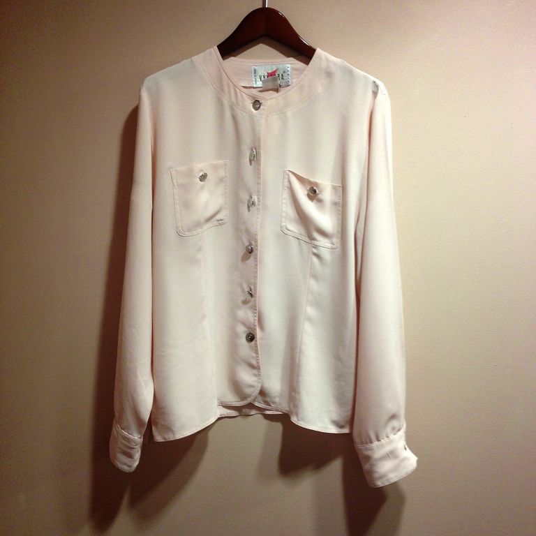 ノーカラータイプ。薄いピンク色で綺麗めお姉さんデザイン。つけ襟やアクセサリー、重ね着など違う印象で着合わせられます◎