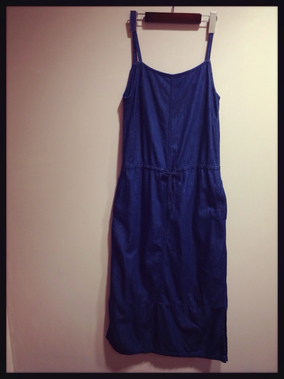 濃い青のマキシ丈ワンピ