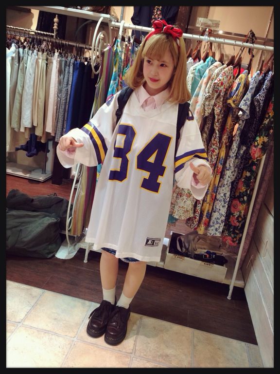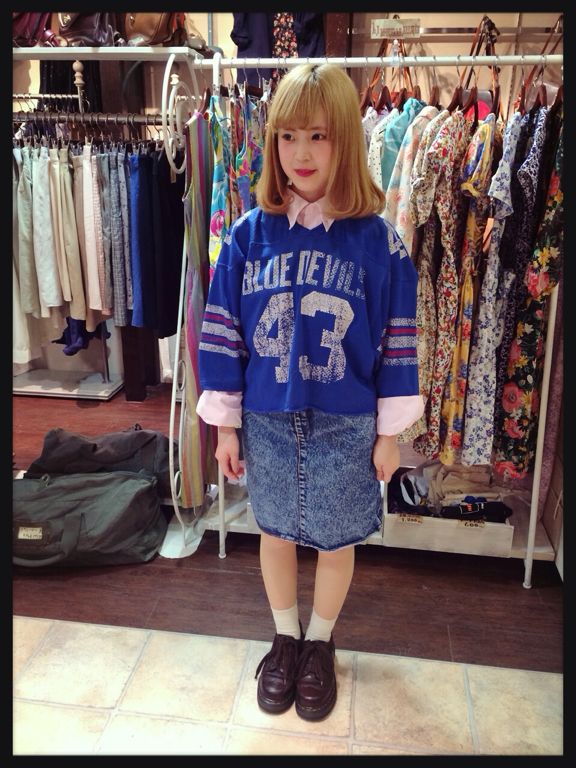 長め丈のナンバリングTシャツは一枚でワンピース風にも着れるので可愛いですよ〜^_−☆!!