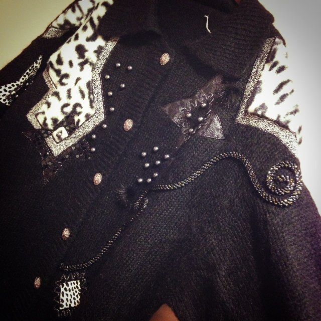 前あきカーディガンタイプ。よく見ると緑や赤のキラキラ入り♡